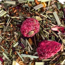 Lemongras, Rooibos Natur, grüne Minze (21 %), Apfel, Hibiskus, natürliches Himbeeraroma, Zitronenschalen, Himbeerblätter (3%), Himbeere (2 %)